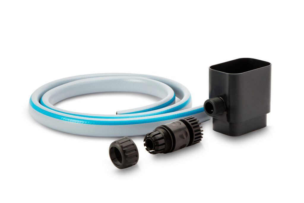 Mechanizm działania jest całkowicie bezobsługowy i bezpieczny dla elewacji. Urządzenie montuje się jako wstawkę w pionowej rurze spustowej, a następnie łączy wężykiem ze zbiornikiem. Kluczową zaletą naszego rozwiązania jest system przelewowy. Gdy zbiornik na deszczówkę napełni się w 100%, odzyskiwacz wody automatycznie odcina dopływ i kieruje nadmiar wody z powrotem do rury spustowej, a następnie do kanalizacji deszczowej lub studni chłonnej. Dzięki temu nie musisz martwić się o przelanie beczki i zalanie terenu wokół domu podczas ulewy.